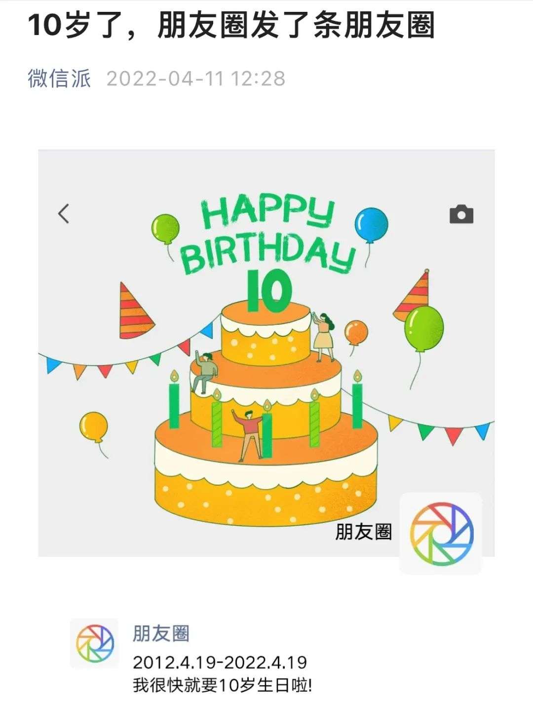 4月19日微信为朋友圈十周年庆生,按时间顺序呈现了365个用户分享的朋友圈故事。当日晚间,不少人在各自的朋友圈纷纷晒出了10年前或者是第一条朋友圈的内容。