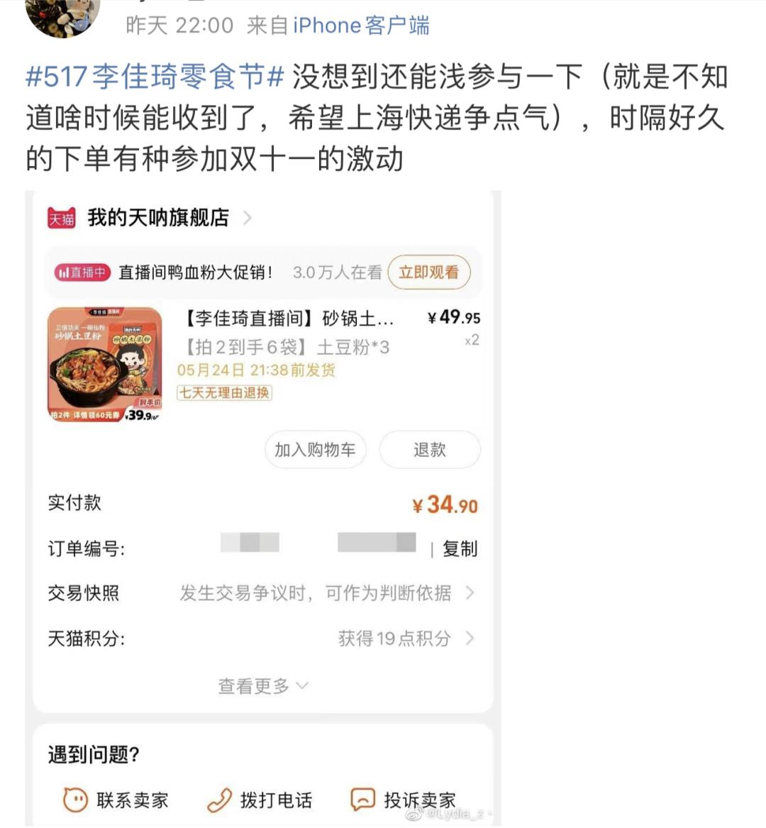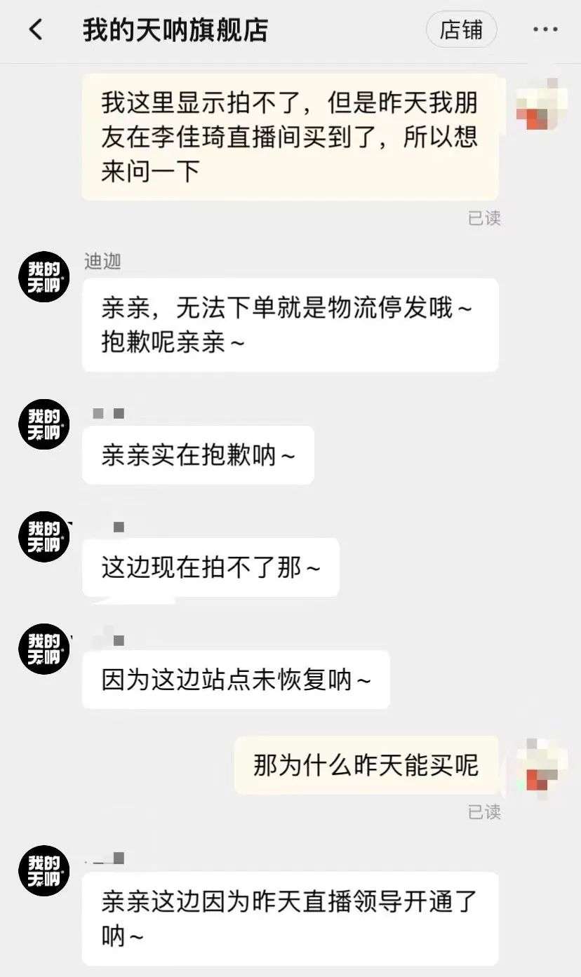 “据说今天李佳琦(直播间发货)对上海开放,大家快去!”