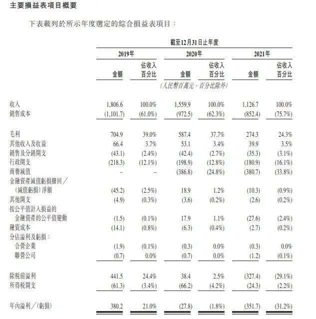 星空华文最新资料显示,2019年~2021年,星空华文的营业收入呈逐年下降,分别为18.07亿元、15.60亿元、11.27亿元;净利润分别为3.8亿元、-2780万元、-3.52亿元;毛利率则分别为39%、37.7%、24.3%。