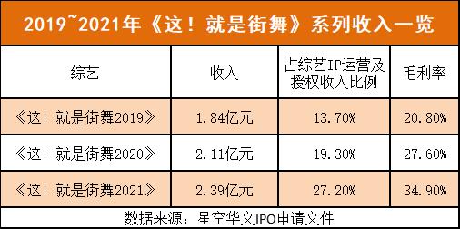与《中国好声音》不断下降的毛利率相比,《这!就是街舞》这一系列的收入和毛利率则呈现逐渐上涨趋势。2019年~2021年,《这!就是街舞》系列分别贡献了1.84亿元、2.11亿元、2.39亿元收入,毛利率分别为20.8%、27.6%、34.9%,逐年上涨,但但距离《中国好声音》的巅峰时刻仍相去甚远。