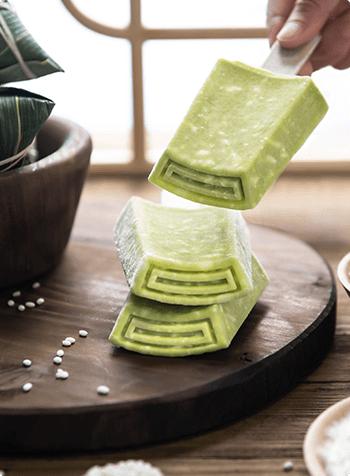 临近端午节,近期钟薛高在线上推出“粽有所爱系列”套餐,其中一款和五芳斋联名的「清煮箬叶雪糕」,把带有时令特点的粽子转为常规产品,产品为粽香牛乳口味,添加糯米颗粒、海藻糖,并融合了箬叶香气。
