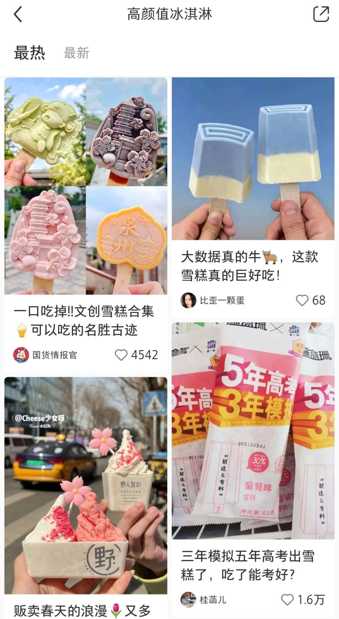 社交媒体上,对新品冰淇淋口味、造型、价格的讨论层出不穷。冰淇淋作为热搜热榜上的常客,已然自带“流量”,一次又一次地实现破圈传播。