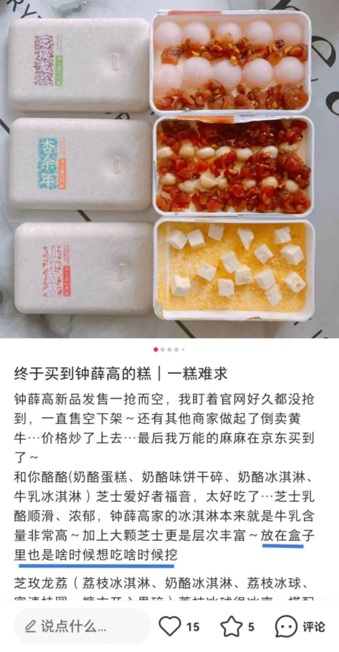从社交平台的反馈来看,即使这款雪糕在上市两月后仍然“一糕难求”,但也有不少消费者品尝后反馈,“料很足”,“放在盒子里啥时候想吃啥时候挖”,一盒280g的容量,达到了同品牌片状雪糕的近4倍,因此也更适合家庭、办公室或户外分享场景,其形似蛋糕甜品的包装也推动了冰品品类礼盒装趋势的发展。