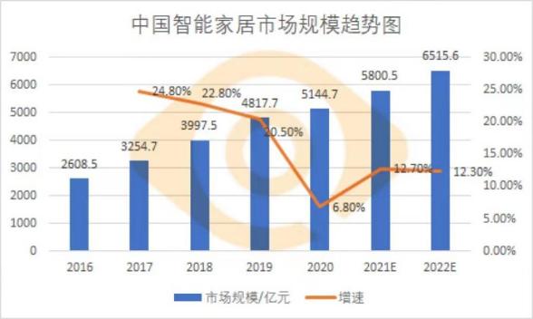 图:国内智能家居市场规模预测(新眸制图)