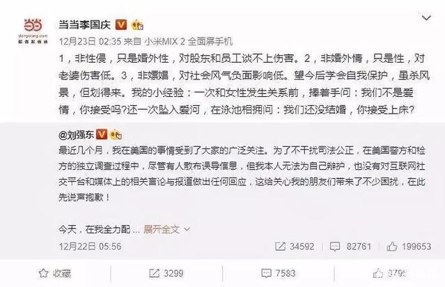 同年12月,李国庆在微博力挺刘强东,并分享自己的婚外性经验,首次将两人的婚姻矛盾赤裸裸扯给公众看。