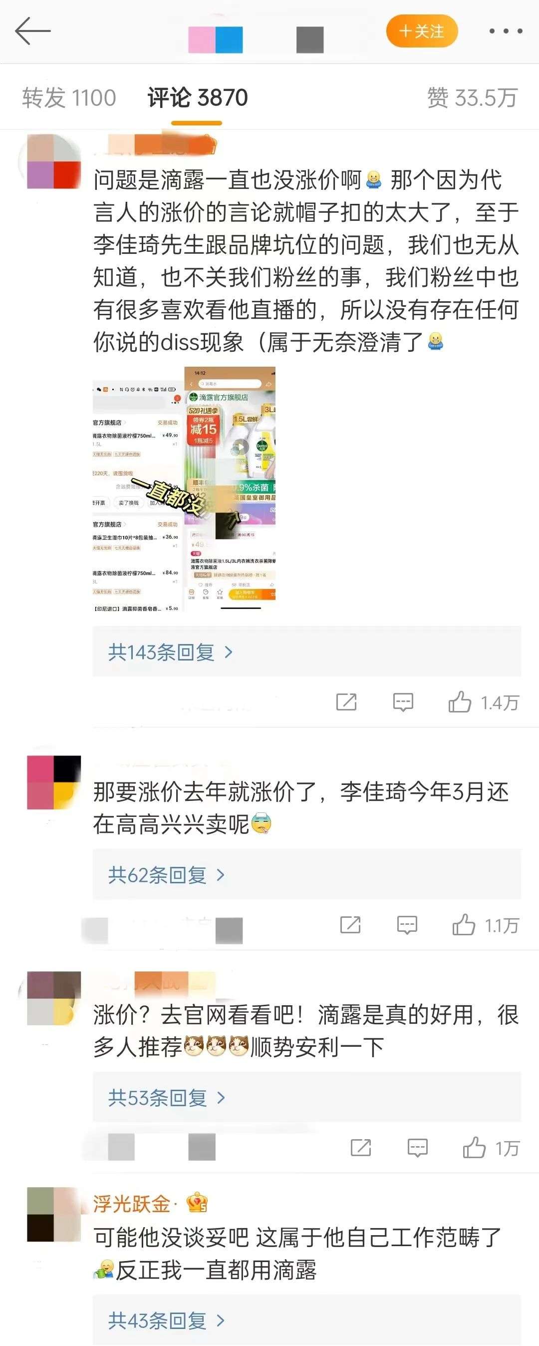 另一派则表示李佳琦是在为消费者谋求更多福利,并希望在李佳琦直播间购买滴露产品。