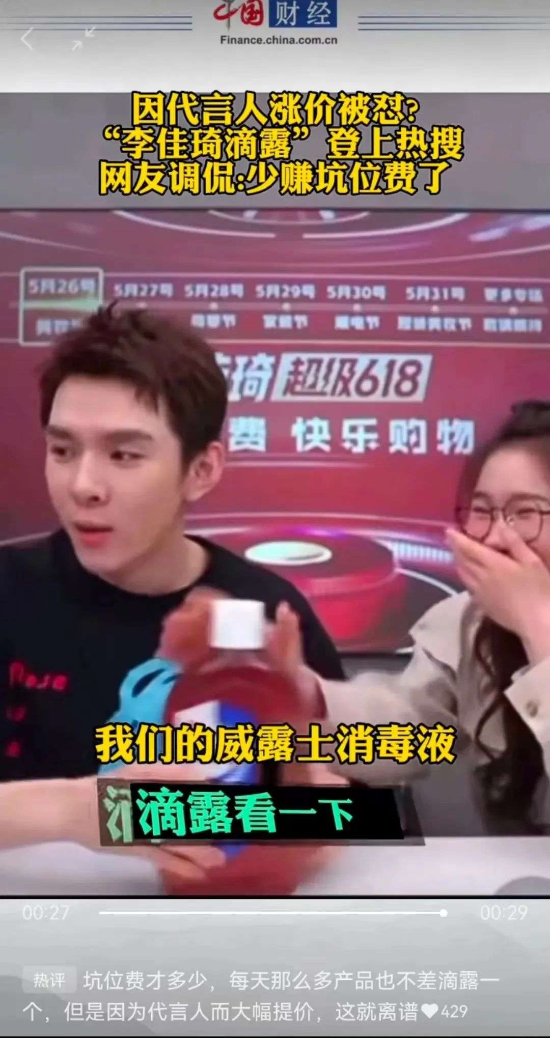值得一提的是,尽管#李佳琦滴露#话题在网上不断发酵,但处于舆论焦点的滴露却并未公开表态,就连李佳琦也删除了5月16日的直播回放视频。