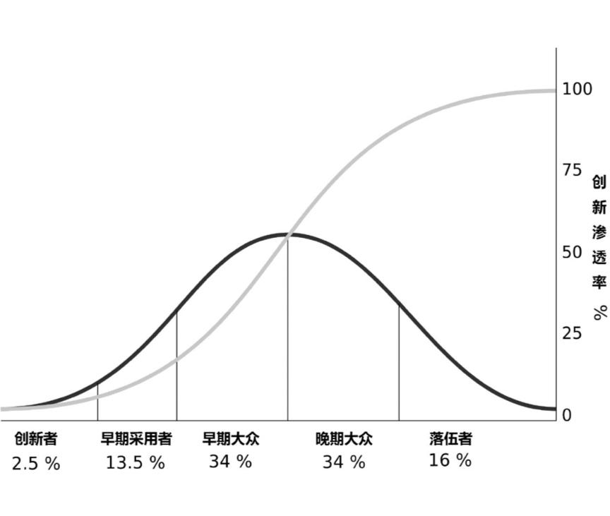 这里不得不提到1962年美国学者罗杰斯提出的“创新扩散曲线”。