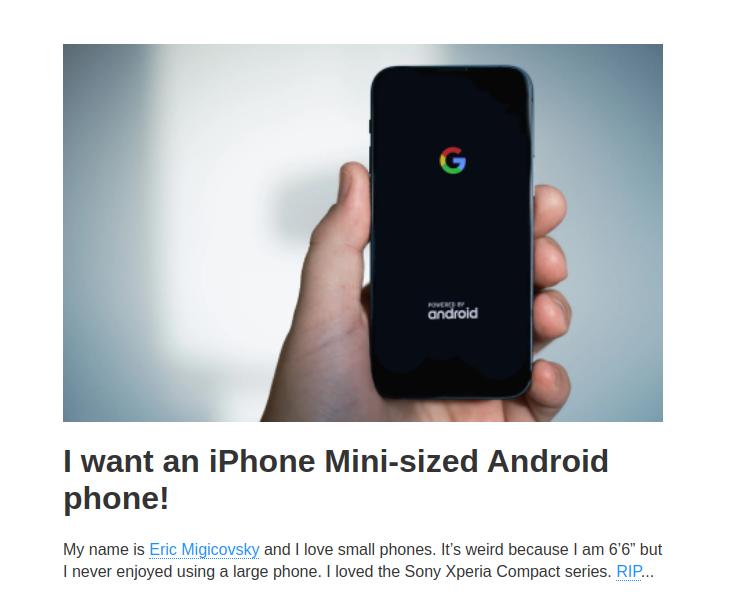 智能手表品牌 Pebble 的创始人Eric Migicovsky 日前创建了一个专门网站,抒发自己对小屏手机的喜爱,也呼吁安卓厂商做一款 iPhone mini 那样的小屏旗舰。