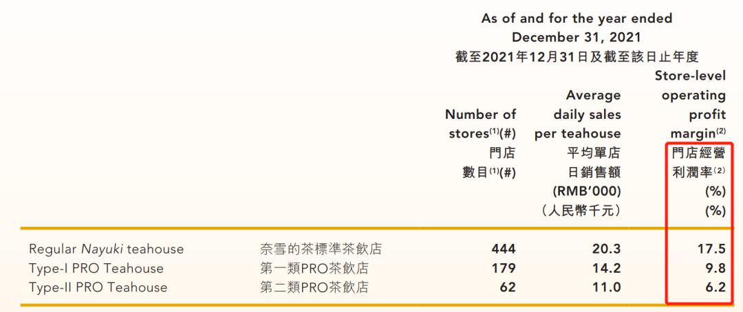 根据奈雪2021年的财报显示,奈雪的茶标准店的门店经营利润率为17.5%,但第一类和第二类PRO茶饮店的门店经营利润率分别为9.8%和6.2%,远不及标准店利润率高。