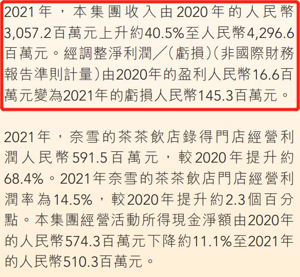 根据奈雪2021年财报显示,去年奈雪营收约43亿,增长了40.5%,但也由盈转亏,经调整净亏损达1.45亿,典型的增收不增利。
