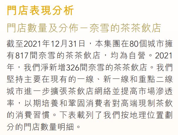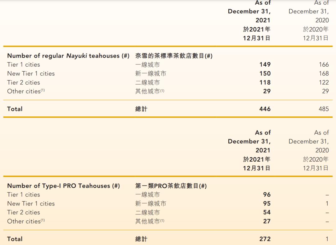 截至2021年12月31日,奈雪已经有817家线下店,其中包括446家标准店(2021年12月31日为485家)、272家第一类PRO店(2020年12月31日为1家)和99家第二类PRO店(2020年12月31日为5家)。