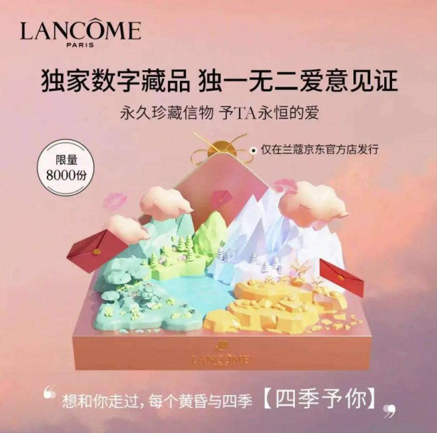 高端美妆品牌「Lancome」则在其发布的 520 礼盒中别出心裁地放置了三款独家 NFT 数字藏品——“心动晚霞”“四季予你”“沉醉花海”。