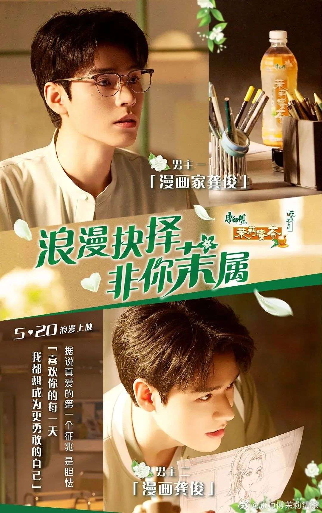 拍摄春心萌动的爱情微电影已经成为了食品品牌「康师傅」旗下茉莉花茶、茉莉绿茶产品线的“传统手艺”,杨洋、赵丽颖、李现等明星都曾出演。今年茉莉花茶的 520 微电影,由代言人龚俊领衔主演,分饰漫画家和漫画主角两个角色,演绎了一段跨次元的浪漫故事。影片最后提出要勇于争取和珍惜美好的爱,并用“这杯茶,缘来注定;那个人,非你茉属” 和茉莉花茶饮品连接。
