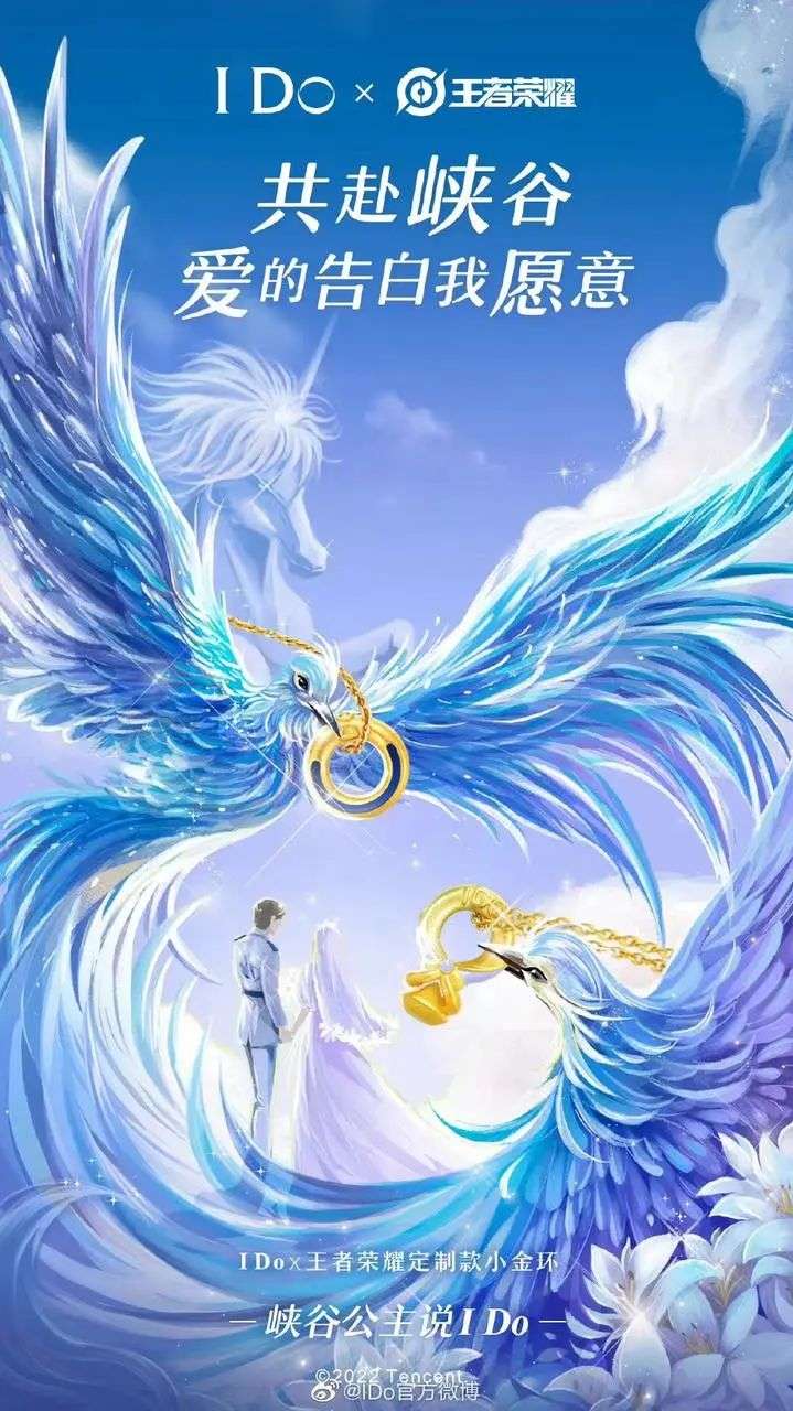 每个传奇的营销背后都离不开动人的故事。今年 520 的设定里,孙策和大乔在梦幻相遇后决定双向奔赴,王子冲破阻拦不顾一切为公主而来,金环和鲜花也随着青鸟翩然而至。婚戒品牌「I Do」以此为灵感,上线了首款情侣金饰,寓意“峡谷见证,用一生兑换我愿意”。