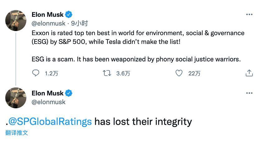 这一切的“罪魁祸首”ESG评价体系,也随着马斯克的推特攻势,成为全世界关注和争议的焦点。