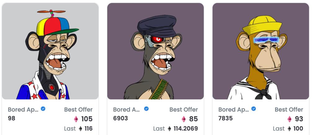 “无聊猿游艇俱乐部”系列NFT近期交易情况。图片来源:Opensea官网截图