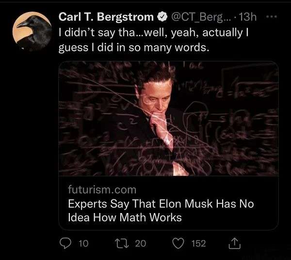 但对于这一抽样调查,美国华盛顿大学的Carl T. Bergstrom教授表示,“马斯克的抽样研究方法有些愚蠢”,并且也可能出现“选择性偏差”,并且更进一步来说,“对于高达440亿美元的大型并购交易来说,选择单一用户的100名粉丝进行抽样调查,这并不是合格的尽职调查”。所以不难发现,马斯克及其团队得出的结论或许也站不住脚。