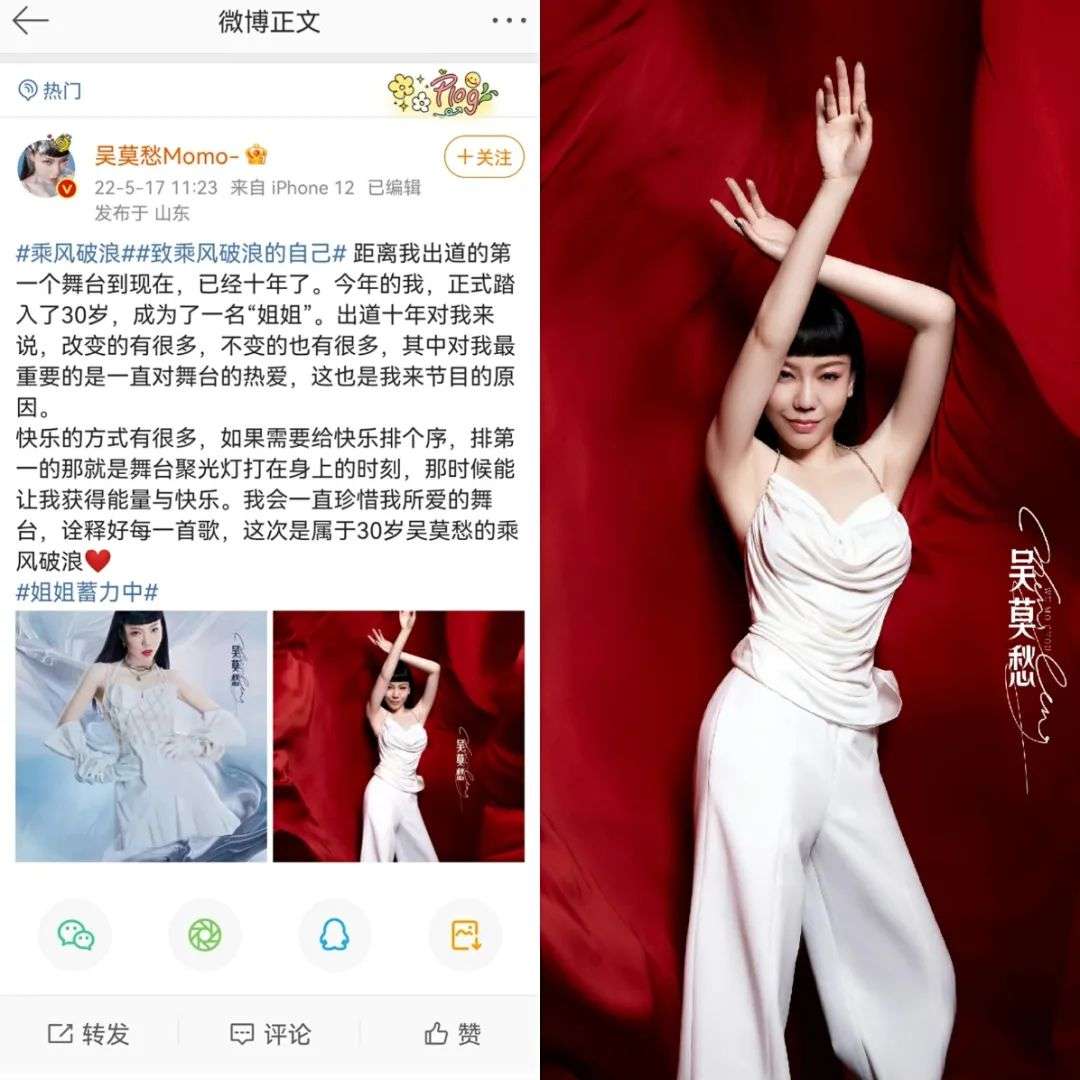 最新一期《乘风破浪的姐姐3》嘉宾官宣,实力唱将中,出现了许久不见的吴莫愁。2012年,吴莫愁在综艺中走红,凭借独特夸张的舞台风格,被当时的娱记们奉为“中国版Lady Gaga”。10年过去,捧红“吴莫愁”们的《中国好声音》拍了十季,但时代已经转向30+的姐姐们,霸屏综艺成了“乘风破浪”。曾经的王牌选手东山再起,但老化的综艺却难以再现辉煌。