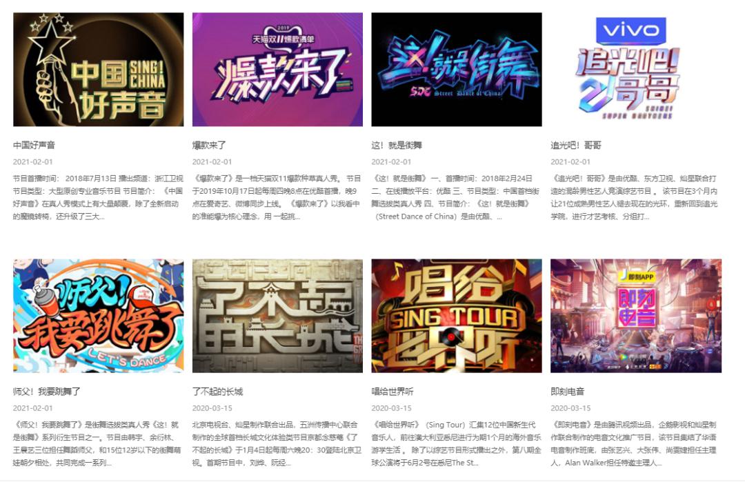 2012年,《中国好声音》横空出世,开创了一代综艺的新玩法:传统概念里的“评委”变“导师”、选手依靠一把好嗓子赢得“导师”转身,盲选机制为其带来了收视率破3、豆瓣评分7.9的好成绩。2015-2016年巅峰时期,好声音为其带来了11.4亿、10.1亿的高收入。时至今日,好声音依然是为其带来收入最多的综艺,但金额在逐年下滑。2019-2021年,好声音收入从4.9亿下滑到2.5亿,毛利率也从46.6%减少到16.8%,甚至到去年只剩下2.2%。