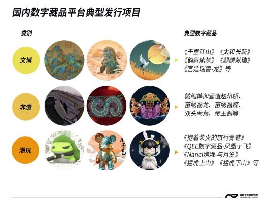 以鲸探平台为例,其平台上源自博物馆、非遗、国风、书画艺术等传统文化类数字藏品,相关作品量占比达70%。