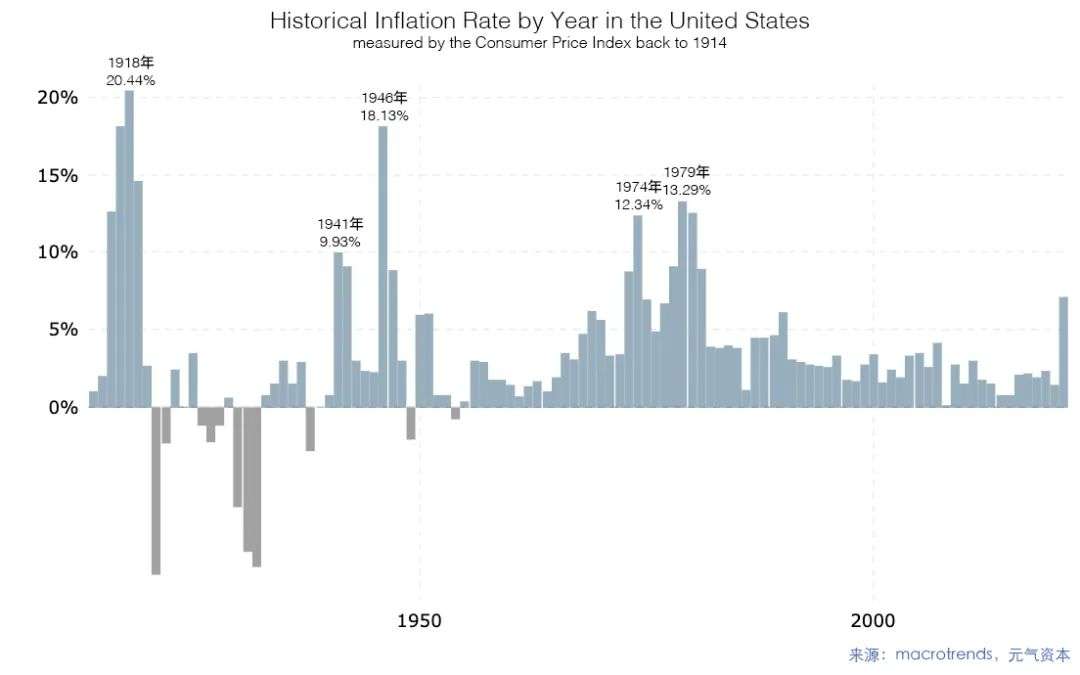 1914年-2021年美国通胀率变化(来源:Macrotrends)