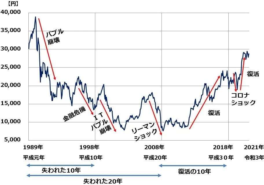 1988 年 12 月-2021 年 12 月 平成日经平均指数(来源:楽天証券経済研究所)