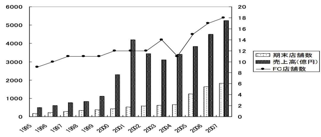 优衣库销售额变化与店铺数量(来源:高科大應用外語學報)