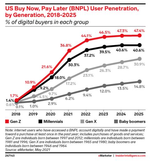 随着通过社交媒体的大肆传播俘获了 Z 世代和千禧一代的芳心,BNPL 带来的千亿市场正在崛起。