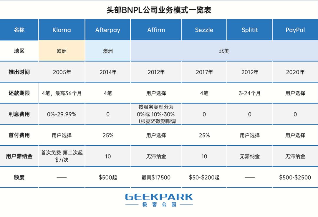 根据表格可以发现,虽然不同的公司业务模式略有不同,但总结起来,BNPL 服务基本不收取利息、分期手续费、管理费等等,还款期限也更为灵活。