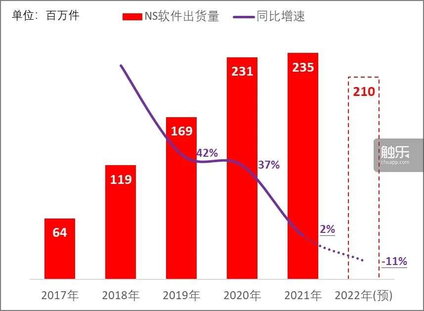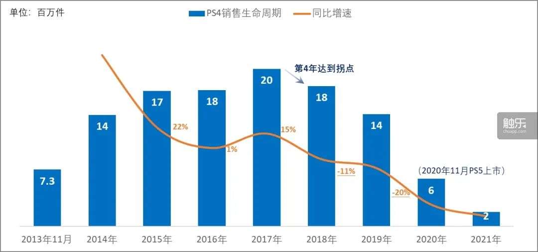巧合的是,NS与隔壁PS4一样,都在发售4年后到达拐点。不过,有赖于第一方IP持续稳定地进入产品线,又有《集合啦!动物森友会》这样的出圈爆款,所以NS的后劲或许会更强一些。