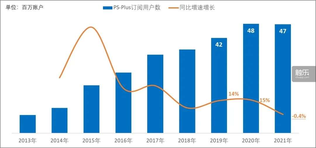2021年,索尼PS平台的会员PlayStation Plus订阅人数停止增长,网络月活人数连续5个季度同比小幅下降。这显示了PS平台的用户规模增长已停滞,可能也意味着新硬件PS5目前主要是满足换机需求,无助于扩大用户规模。