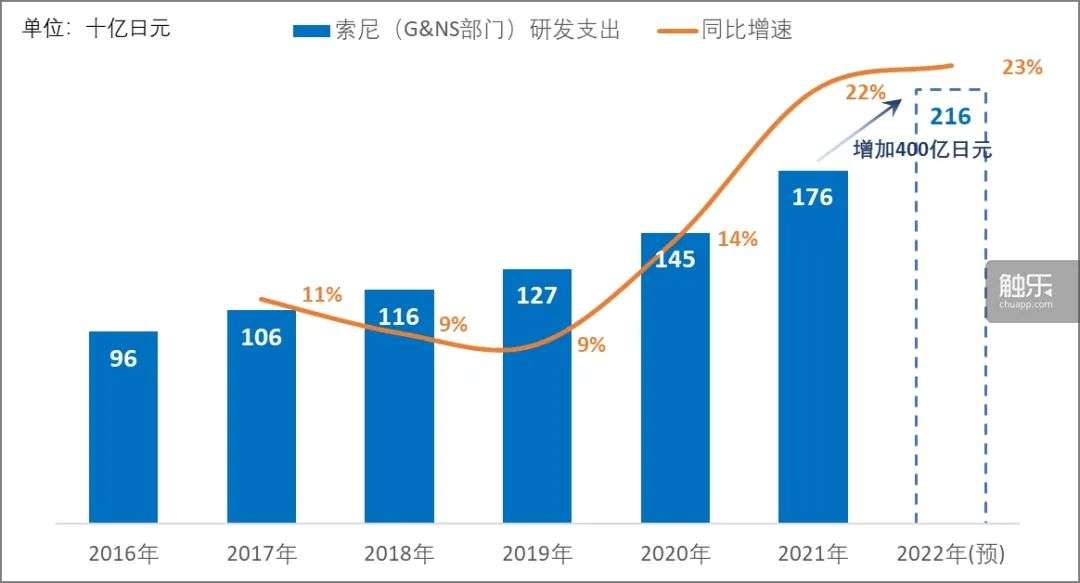 因此,当危机显露时,索尼增加了对工作室软件研发的投入。原本在2020财年时,预期来年为研发增加200亿日元投入,但是2021财年实际增加数额是310亿日元,研发费用增长速度也从14%提升至22%。2022年,索尼预期为研发增加400亿日元投入,增速保持在23%左右。