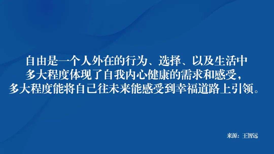 但从普通人层面,我认为自由是一个人外在的行为、选择、以及生活中多大程度体现了自我内心健康的需求和感受,多大程度能将自己往未来能感受到幸福的道路上引领。