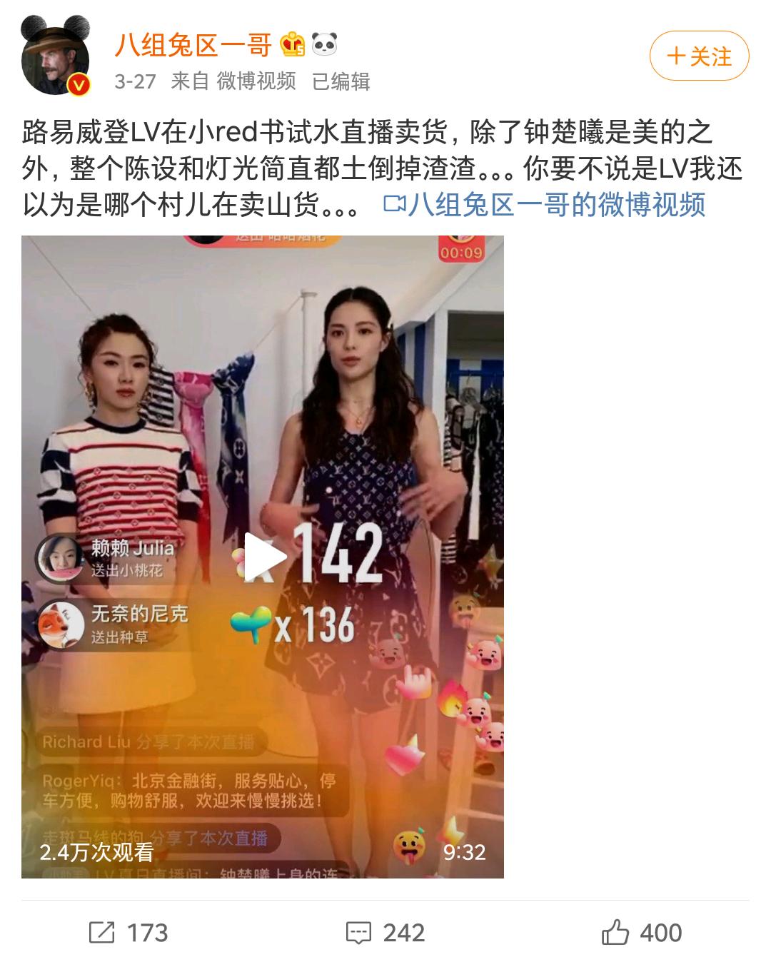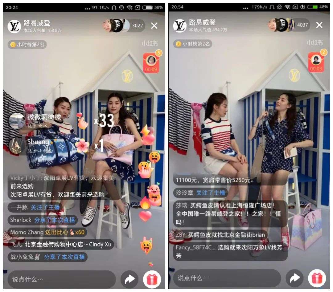 早在疫情刚刚发生时,LV就在天猫进行了自己的直播首秀,成为了奢侈品中第一个“吃螃蟹”的品牌。然而那场直播的环境布置、灯光安排十分平凡,完全没有体现出品牌该有的精致,甚至连邀请到的嘉宾钟楚曦都在灯光的影响下给人一种“泯然众人矣”的错觉。这场直播最终也仅有1.5w人观看,付费转化更是寥寥无几。