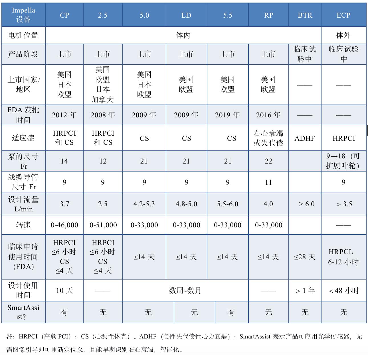 Impella系列产品参数对比