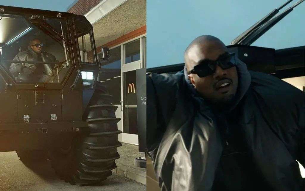 Ye 和麦当劳的缘分,其实并不只是这次的合作。在几个月前超级碗期间的麦当劳广告里,他就已经出过镜,坐在他那辆吸睛十足的 Sherp ATV 越野车上,在麦当劳的得来速窗口前,看着菜单犹豫不决。