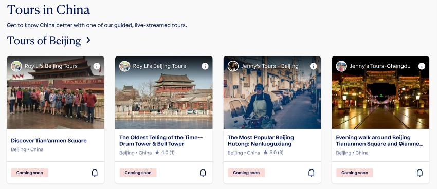 除了婚礼直播外,疫情也加速了虚拟旅游市场,在家便可通过电视、手机等免费环游世界。早前亚马逊和Airbnb都曾经尝试过推出线上虚拟旅行体验,来吸引旅客进行互动。