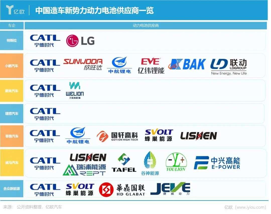 相比于传统车企在动力电池领域的多点布局,造车新势力近乎清一色地押注宁德时代。