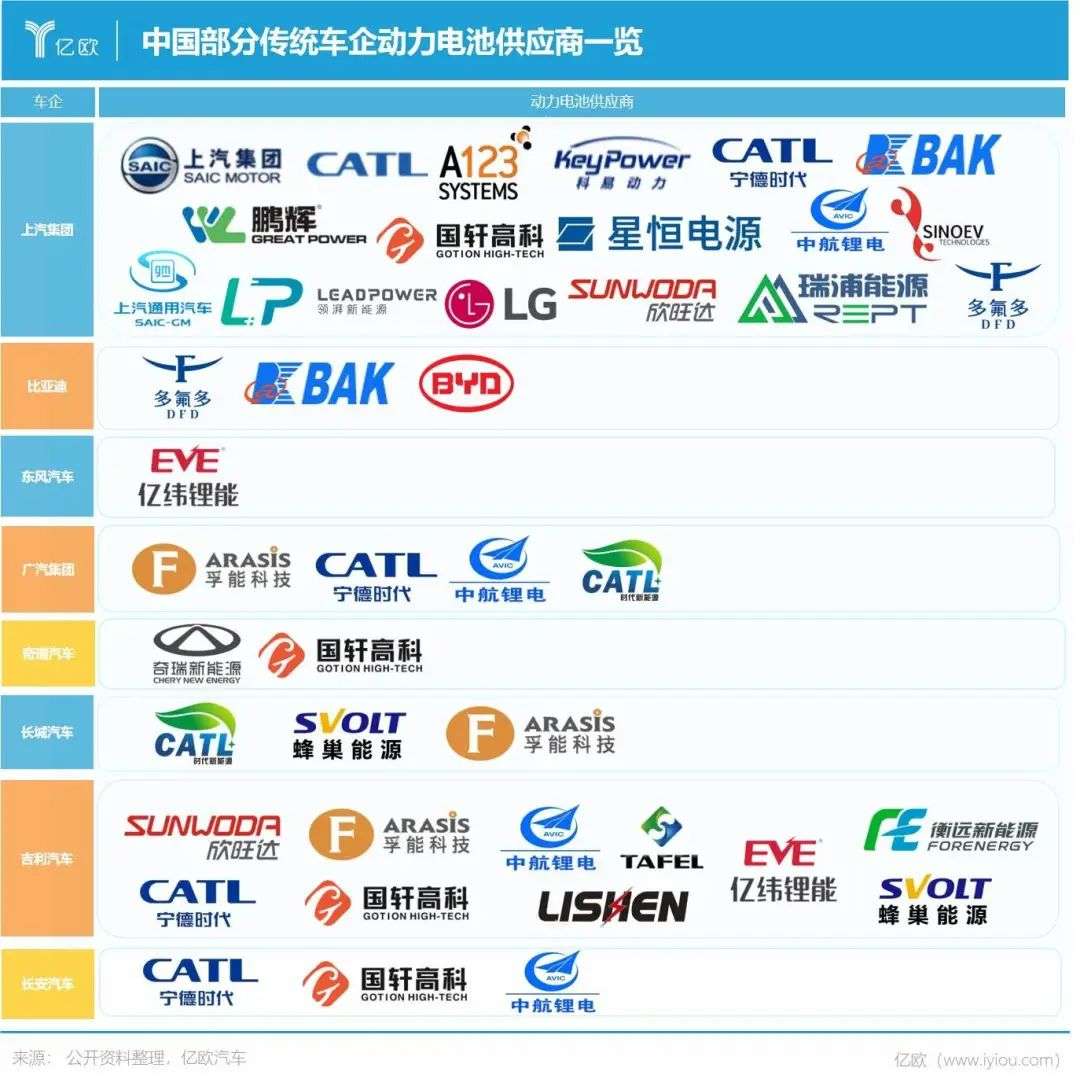 在动力电池供应商的选择上,传统车企的布局更为多元,除了选择成熟的电池供应商,还会通过自研、孵化的方式,旨在将新能源汽车的“心脏”握在手上,一雪在燃油车时代中的发动机“卡脖子”之耻。