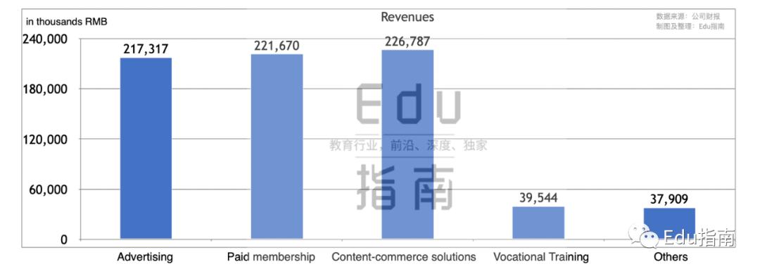 其中广告贡献营收2.17亿元,付费会员营收2.22亿元,内容商务解决方案营收2.27亿元,职业培训营收3954万元,其他业务营收为3791万元。