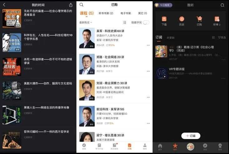 无论是喜马拉雅 FM、得到、十点读书、有书、樊登读书会等垂直类 App,还是百度、抖音、快手等“自媒体+算法”平台,里面都有很多质量很高的课程。