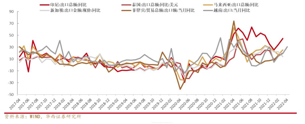 越南、马来西亚、印尼、泰国、菲律宾五国出口增速 来源:华西证券