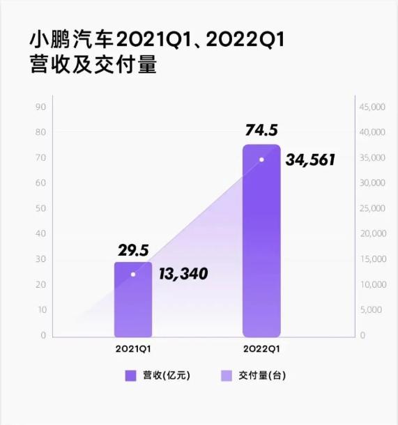 5月23日,小鹏汽车发布了2022年一季度的财报,报告期内,小鹏营收录得74.5亿元,同比增长152.6%,连续7个季度保持150%以上增速。