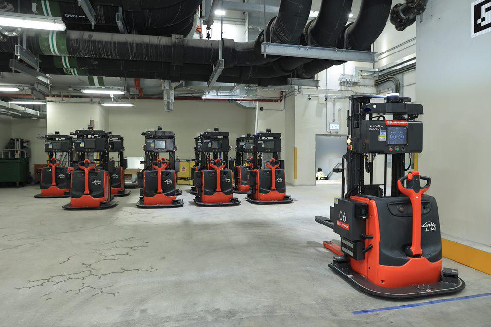 「未来机器人」的无人叉车在先进制造业中心内投入运作