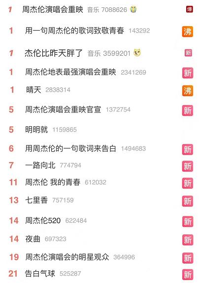 周杰伦演唱会的数据当然很好。不仅第一场开播前就有超过2000万的预约,两场演唱会的总观看量达到了创纪录的1亿级别。社交媒体上也是铺天盖地的讨论,两场演唱会收获了100余条微博热搜,总阅读量近50亿次。