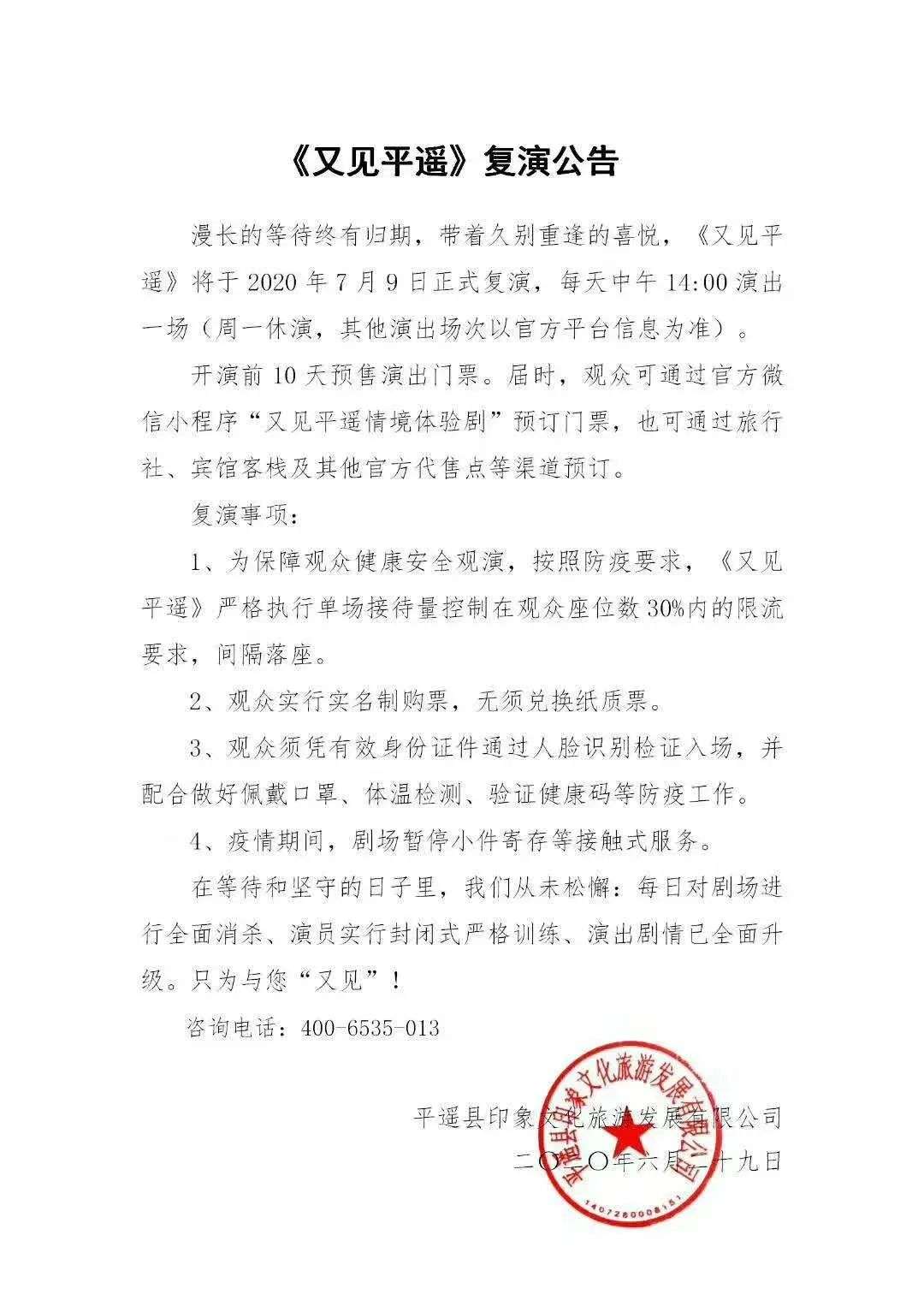 而今年因为疫情的原因,上半年的旅游演艺行业更是“惨不忍睹”。但随着疫情防控形势的向好,目前多个旅游演艺项目已拉开复演的序幕。5月21日,《又见平遥》发布复演公告;同日,大型水上实景演艺《如梦晋阳》回归启幕首演,演出预计持续至10月中旬;5月22日晚,在印象西湖公益专场后《最忆是杭州》2022年演出季也全面开启。