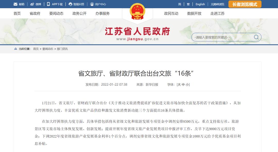 广东省3月份印发的《广东省促进服务业领域困难行业恢复发展的若干措施》提出,省财政统筹资金作为文旅企业纾困扶持资金,主要用于扶持全省重点旅行社、A级旅游景区、文化艺术院团、演出场馆等文旅企业以及文旅促消费活动。