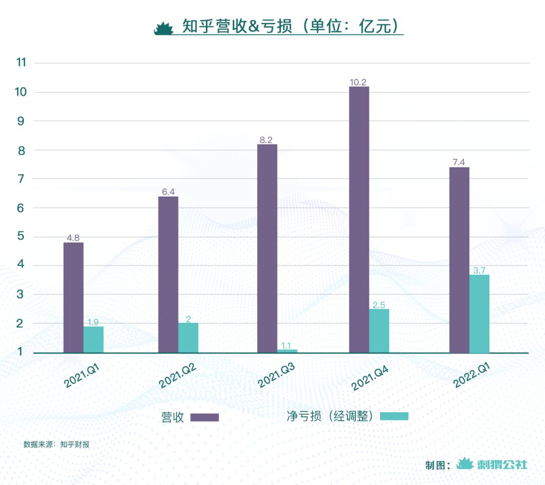 5月25日晚,知乎发布2022年第一季度财报。这也是知乎今年4月回港上市之后发布的首个季报。数据显示,知乎一季度营收7.43亿元,同比增长55.4%。营收增长的另一面,知乎的亏损也在持续扩大。一季度经调整后的净亏损为3.67亿元,同比扩大了89.8%。