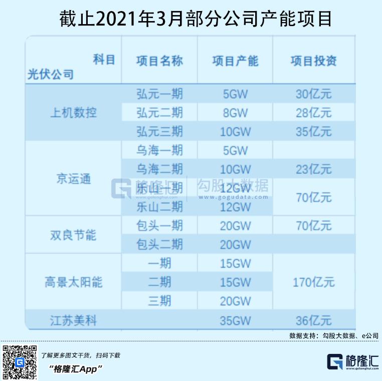 还有非上市公司也看上了硅片大蛋糕。高景太阳能投资170亿元建设40GW硅片产能,江苏美科斥资36亿元建设35GW产能。